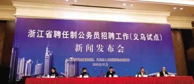 2013年12月10日,义乌召开浙江省聘任制工作(义乌试点)新闻发布会。首次面向全国高薪招聘6名聘任制公务员。中新社发