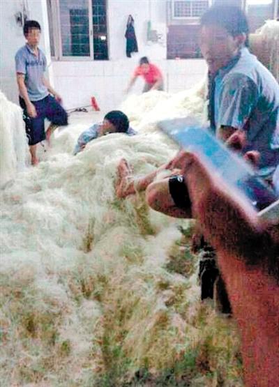 工人赤脚直踩米粉堆,引发网友们的反感。“看了直想吐”“这是给人吃的么?”“监管部门在哪里?”“必须让这种无良生产企业破产”成为最集中的评论。