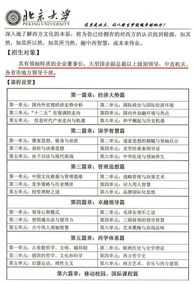 北青报记者从“北京大学信息学院高层培训中心”获得的招生简章