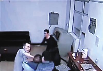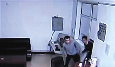4点29分 高玉伦逐渐走到管教的左后方,趁其不备,用左胳膊勒住管教的脖子,同时屋外两人冲进值班室。