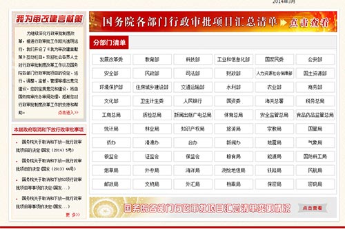 中国机构编制网公布国务院个部门行政审批事项汇总清单的网页截屏
