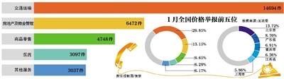 12358价格举报系统1月1日正式开通。2月25日,发改委对外公布,1月各级价格主管部门接到价格举报、投诉、咨询、信访总计49169件。其中以停车费为主的交通运输价格举报以及物业管理收费价格举报数量居前两位。
