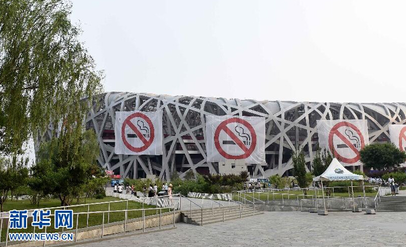 5月30日,北京国家体育场“鸟巢”悬挂巨幅禁烟标志。当日,北京国家体育场“鸟巢”悬挂巨幅禁烟标志。被称为“最严禁烟令”的《北京市控制吸烟条例》6月1日起实施。 新华社记者 公磊 摄