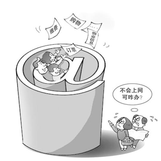 “前两年刚刚学会用ATM机,现在又有网银支付缴费了,我以前没学过电脑,这些功能都不会用。”53岁的李萍是北京西城区一名普通退休职工, 她告诉记者,自己退休在家后偶尔也会上网,但是像网购、网上预约挂号这样的操作自己都无法独立完成,还是要等女儿回家来帮忙,很不方便。