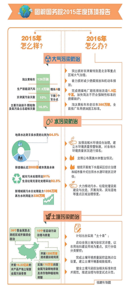 全国人大代表郭军是我国水利领域的专家,她对报告中的数字格外敏感。“报告中说‘城市污水处理率达到91%’,但同时又提到城市黑臭水体大量存在的问题,逻辑上是矛盾的。”还有“推广配方施肥面积累计达15亿亩”的表述,我国的基本农田总量约18亿亩,按照这个情况来看,我国基本实现了配方施肥措施。但是,《2014年中国环境状况公报》显示,化学需氧量占到48%,氨氮占31.7%,农业面源污染依然严重。
