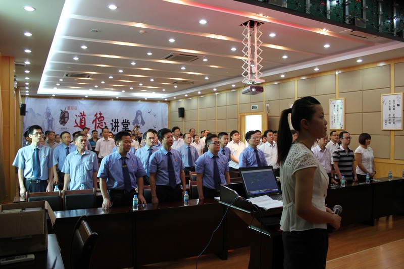 道德讲堂以“物实 为民 廉洁 让道德与法律同行”为主题,通过开展“自我反省、唱歌曲、学模范、谈领悟、诵经典、发善心、送吉祥”等六个环节,让全体检察干警受到了一次道德的的洗礼。活动一开场全体到场学员集体起立齐声高唱《公民道德歌》。接着, 学习全国优秀共产党员《焦玉禄》先进事迹短片,学习全国“模范检察官”张彪同志先进事迹。随后多名干警纷纷上台发言畅谈自己的道德感悟,他们表示“道德讲堂”能够积极传递正能量,对检察机关群众路线教育实践活动具有重要的意义,在今后的工作中将切实做到公正执法、无私奉献,生活中要遵守社会公德,增强道德意识,树立检察官的良好形象。并跟随主持人学习《道德经》中“曲则全,枉则直,洼则盈,敝则新,少则得,多则惑。”等经典道德名句,主持人还以送吉祥的形式将“道德讲堂” 可贴便签发到每一名学员的手上,让每个道德讲堂的学员能用它记录下我们身边好人的故事,发现身边每一位有道德的人,记录下自己心灵的感悟,升华自身道德素养,结合自身的工作和生活,用身边的事教育身边的人,努力培养从现在做起,从身边做起,从小事做起的良好道德风尚。