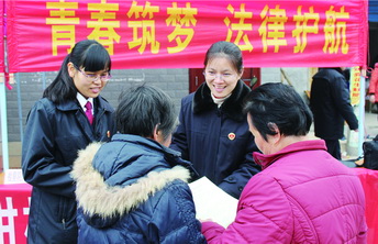“谢谢检察官同志,如果不是你们说,我还不知道我在娘家也可以承包土地呀……”一位妇女说道。这是今年广西桂林市叠彩区检察院青年志愿者在桂林市中心广场开展的妇女维权宣传活动现场,也是该院青年志愿者服务队工作的一个剪影。
