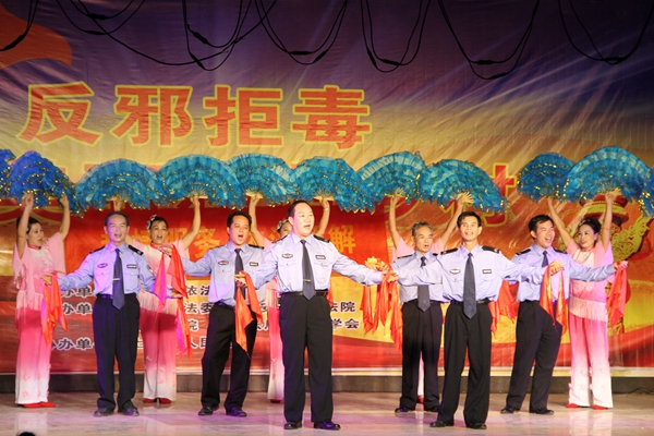 广西检察网9月5日讯(通讯员 何智丽)为不断加强法治文化建设,倡导和鼓励群众自觉参与到法治文化活动中,在休闲娱乐中潜移默化地接受法治教育,近日,天等县检察院在县委政法委的统一部署和安排下,携手县公安局、县法院、县司法局等部门,深入天等县上映乡桃永村开展“反邪拒毒,建美丽和谐乡村”为主题的法治宣传文艺巡演进乡村活动,为群众送上了一顿丰盛的法治文化大餐。