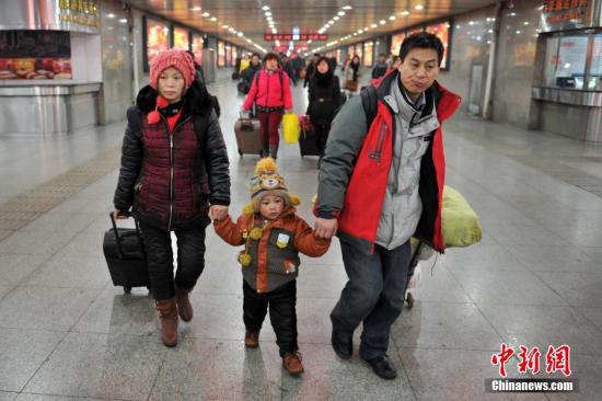2月6日正月初七,2014全国春运迎来返程客流高峰。图为北京西站出站客流。中新网记者 金硕 摄