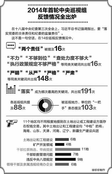 巡视主要发现了哪些问题?又将剑指哪些领域的“老虎”和“苍蝇”?对此,中国青年报记者盘点了11个省(区、市)、3个单位的巡视反馈情况,解读其中展现的反腐趋势。