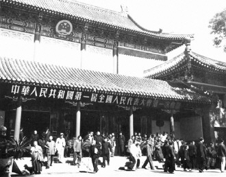 图1:刘少奇在一届全国人大一次会议上作宪法草案的报告。