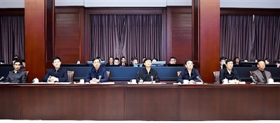 12月4日,中共中央政治局委员、中央政法委书记孟建柱在首个国家宪法日到最高人民法院调研。郝帆摄