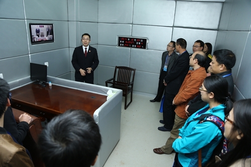 测谎仪、单向镜面玻璃、软化墙面……在自治区检察院办案场所内,每一处都让代表们成了“好奇宝宝”,各具特色的“房间”和每一处细节上的独特设计都引起了代表们的关注和赞叹。而规范性、现代化和人性化兼备的措施和设备无处不在,让代表们对检察工作有了更清晰的认识。