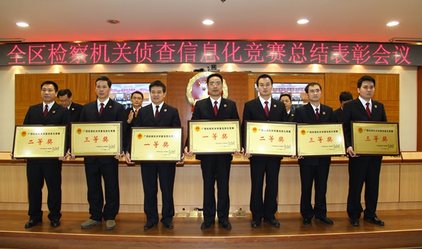 本次竞赛是自治区检察院第一次举办的大规模侦查信息化技能大比武活动,在全国检察机关尚属首次。来自全区三级检察机关的16支队伍96名选手经过信息化初查方案制作等6个项目的角逐,评选出了竞赛优胜单位和“侦查信息化业务标兵”、“侦查信息化业务能手”、“侦查信息化优秀办案人”。