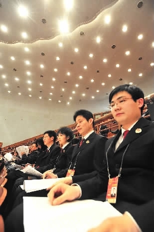 去年两会期间,代表委员听取最高人民检察院检察长曹建明作最高人民检察院工作报告。图为最高检工作人员在会场认真旁听。 本报记者 程丁 摄