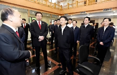 5月13日至15日,中共中央政治局委员、中央政法委书记孟建柱先后到大同、忻州、太原等地就经济发展新常态下政法综治工作进行调研。图为孟建柱在山西省高级法院诉讼服务中心调研。郝帆 摄
