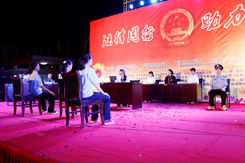 广西检察网(记者陈耀爵 通讯员李铸)2015年5月21日19点30分,一场大型晚会在广西崇左市扶绥县龙华中学正式拉开帷幕,这场名为“法律同行,助力梦想”走进校园的大型法制宣传活动是由广西壮族自治区党委政法委、自治区依法治桂办、自治区高级人民法院、自治区人民检察院等九个单位共同主办的,自治区高级法院副院长兰海宁等领导出席了晚会,龙华中学全校师生观看了演出。