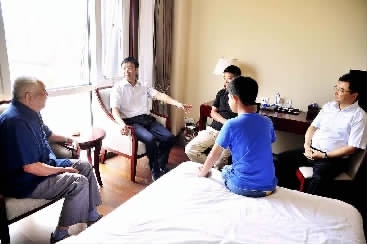 曹建明检察长来到机关干部于小平同志的休假住所,与于小平同志及家属亲切交谈。记者程丁摄