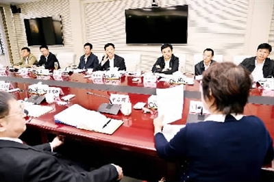 10月9日,最高人民检察院党组书记、检察长曹建明在河北省检察院调研时与部分在冀全国人大代表、政协委员共谋检察机关充分发挥检察职能,更好地保障经济持续健康发展的思路与措施。肖杰摄