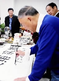 中国作家协会全委会委员、河北省作家协会副主席、一级作家何申在笔会上挥毫泼墨。