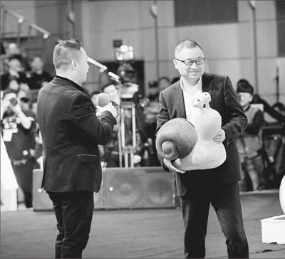 12月3日晚,浙江温州市鹿城区副区长黄定恩(右)在“2015温州电视问政”节目现场收到市民代表送的蜗牛公仔——希望该区能够加快330国道仰义至双屿段“蜗牛工程”进度,减少对市民出行和经济发展的影响。接过“蜗牛”的黄定恩承认进度确实较慢,承诺在12月10日前完成拆除工程障碍的任务,确保明年1月底主线全线通车,2016年上半年完成全部工程。当晚的电视问政以“聚焦建设难点 共推交通发展”为主题,温州市交通运输局、市交投集团、市铁投集团、鹿城区等12个单位负责人上台接受问政。
