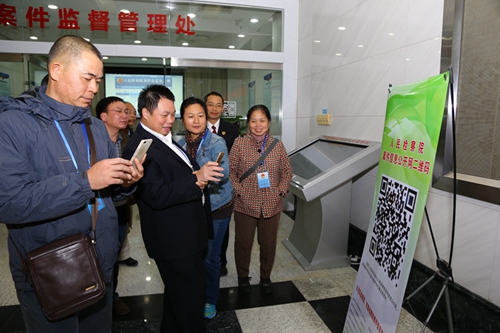 在案件监督管理大厅,代表们纷纷掏出手机扫描自治区检察院的官方微信二维码。看到触摸式大屏幕上关于律师预约的各类信息一目了然,一位代表慨叹:“真方便啊!不用专程跑过来,就能完成预约!”