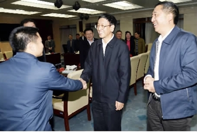 12月15日下午,最高人民检察院党组书记、检察长曹建明在京亲切会见最高检定点扶贫地区云南省文山州、西畴县、富宁县的主要负责同志。肖杰 摄