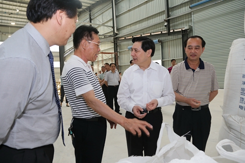 调研中,崔智友冒雨来到了凤山华泰矿业开发有限公司。该公司以开发当地的方解石等资源为主,属于资源型加工企业。崔智友实地走访了企业生产车间、实验室等场所,听取了企业项目建设进展情况及下一步建设规划,详细了解企业目前存在的困难和问题,现场帮助协调解决相关问题。