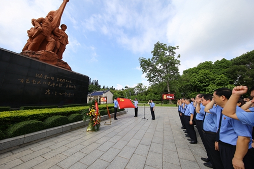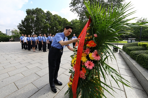 上午9时,在李明瑞、韦拔群烈士纪念碑下,崔智友代表机关全体党员干警向烈士纪念碑敬献花篮。80余名党员检察干警列队向为革命事业英勇献身的革命烈士三鞠躬,并在崔智友带领下,面向鲜红的党旗庄严地重温了入党誓词,郑重承诺对党和国家的忠诚、对人民的热爱和对职责的坚守,表达了做一名合格党员、忠实履行宪法法律赋予的职责决心。随后,党员干警们参观了革命陈列馆,聆听讲解员介绍革命先烈的感人事迹,参观馆内陈列的各类图片、文物,缅怀革命先烈,激发革命意志,传承革命传统,坚定理想信念。