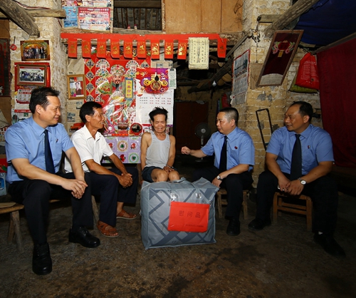 检力助扶贫,慰问暖人心。干警们还来到凭祥市友谊镇匠龙村匠止屯,走访基层、慰问困难老党员。每到一户,检察干警都详细了解老党员的身体状况及生产生活情况,询问他们面临的困难和需要帮助解决的问题,分别向他们送上了慰问金、慰问品,为他们带去党组织的温暖和关怀,鼓励他们千方百计早日脱贫,祝愿他们身体健康,生活快乐。
