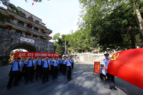 干警们在爱国教育基地友谊关重温入党誓词