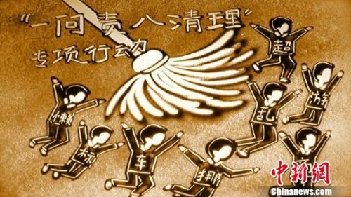资料图:河北廊坊市安次区纪委创作沙画短片《“一问责八清理”专项行动》截图。宋敏涛 摄