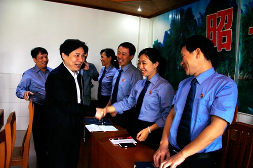 崔智友受到昭平县检察院干警的热烈欢迎
