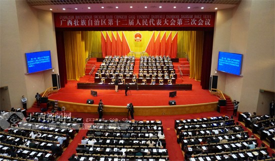 1月20日下午,在圆满完成了大会的各项议程后,自治区十二届人大三次会议在南宁胜利闭幕。广西新闻网记者 刘斐摄