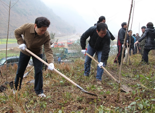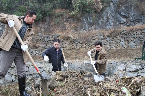 随后,崔智友又先后来到同乐镇平寨村、达存村,在纷飞细雨中和当地干部群众一起植树造林、兴修水利,大家共种下了1200多棵枫树,清理了600多米水渠。崔智友一边挥铲种树,清理水渠淤泥,一边与干部群众交谈,了解水利设施建设和当地农业生产、农民收入情况,强调要进一步加大农村生态建设和水利建设,让山更绿、水更清、天更蓝,并不断夯实农村集约化耕种的基础,为村民发展特色种植业增加收入积极创造条件。