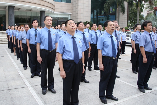 自治区人民检察院党组书记、检察长崔智友,以及在家的党组成员、副检察长,副厅级以上领导和院机关检察人员参加了升旗仪式,热烈庆祝中华人民共和国成立65周年。