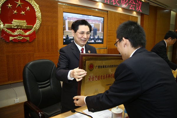广西检察网12月16日讯(王海全  罗华)12月11日,全区检察机关首届侦查信息化竞赛结束,自治区检察院党组书记、检察长崔智友为获奖单位和个人颁奖。崔智友强调,全区各级检察机关要更新执法办案理念,深入推进检察机关侦查信息化和装备现代化建设,不断提高职务犯罪侦查工作水平,努力开创检察工作科学发展新局面。