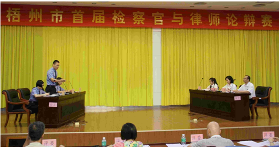 官协会、梧州市律师协会联合主办的梧州市首届检察官与律师论辩赛在梧州学院举行。