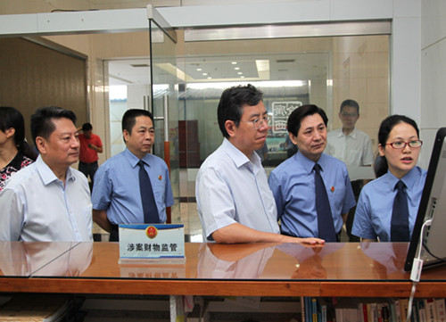 广西检察网8月24日讯 8月20日上午,自治区党委常委、组织部部长喻云林(右三)在自治区检察院检察长崔智友(右二)陪同下视察自治区检察院案管大厅,自治区党委组织部常务副部长宋晓天(左一)陪同调研。
