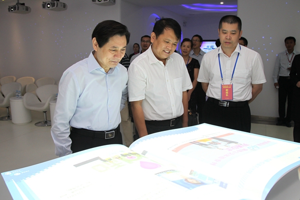 9月8日,崔智友一行查看中国移动广西公司普法工作成果展示