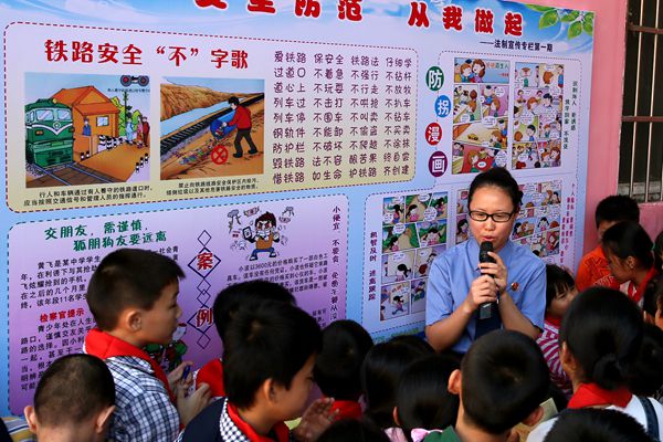 针对该校学生跟着父母四处奔波、成长环境复杂、不少同学有去铁路沿线捡破烂或玩耍的实际情况,以及铁路上高速行驶的列车、小孩子天性爱嬉闹等安全隐患,检察官给同学们讲了破坏铁路被判刑、轻信他人被性侵、交往朋友要当心、遭遇校园小霸王等法制小故事,每讲完一个故事,请同学点评故事主人公的哪些行为不对,应该怎么做。新颖的授课方式激发了同学们的发言热情。