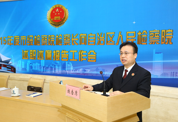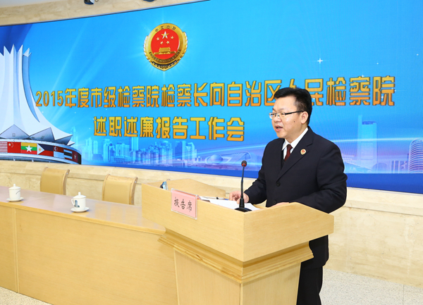 自治区检察院召开2015年度部分市分院检察长述职述廉报告工作会,听取桂林市、崇左市检察院和南宁铁路运输检察分院三位检察长述职述廉