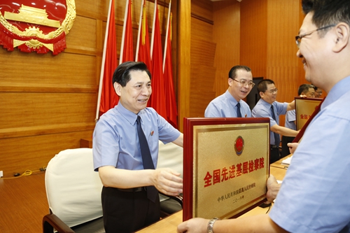 会议以电视电话会议形式开至全区三级检察院。会上还给获得第六届“全国先进基层检察院”和“全国检察机关基层检察院建设组织奖”的我区获奖单位授予奖牌。
