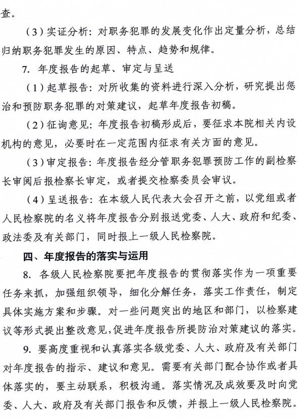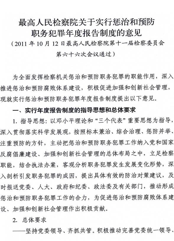 最高人民检察院关于实行惩治和预防职务犯罪年度报告制度的意见