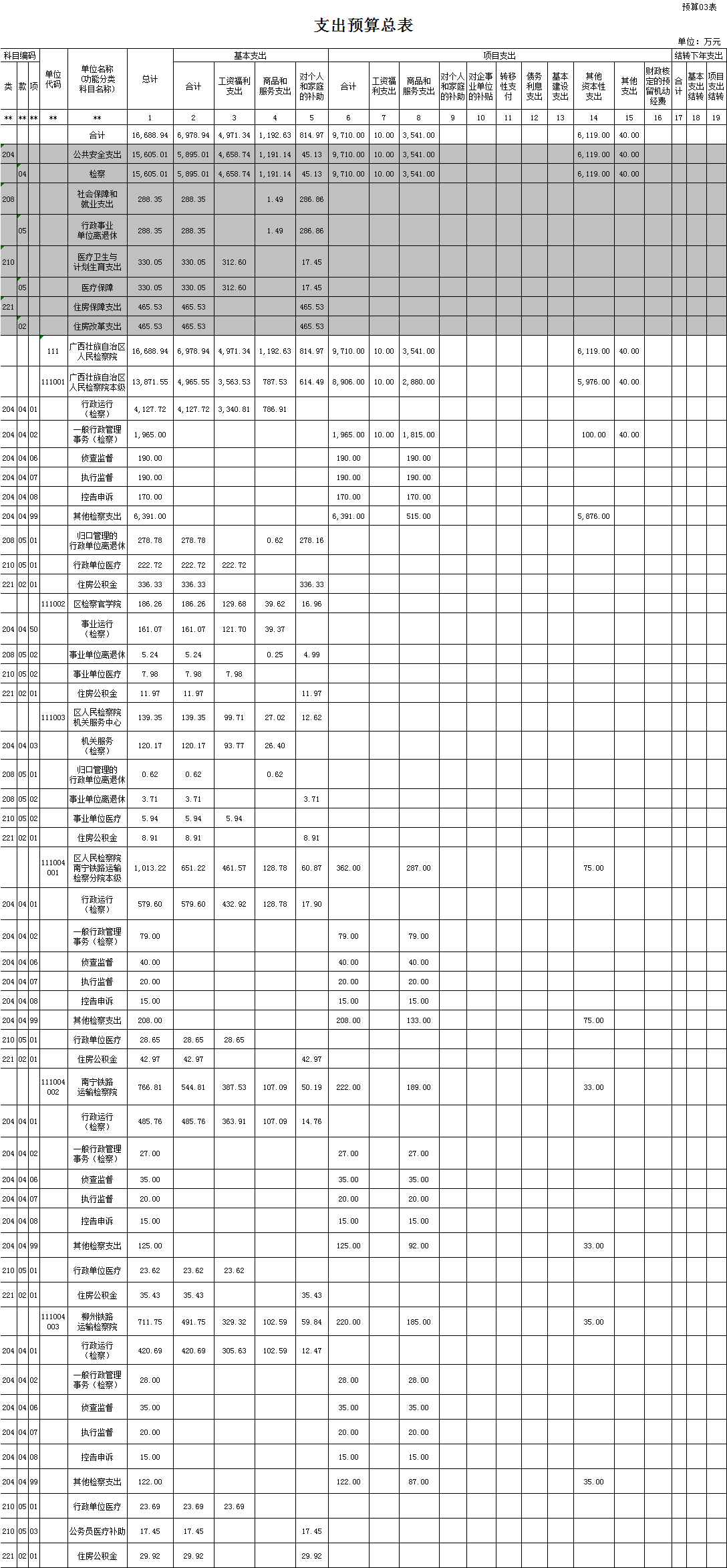自治区检察院2016年部门预算和“三公”经费预算报表—支出预算总表