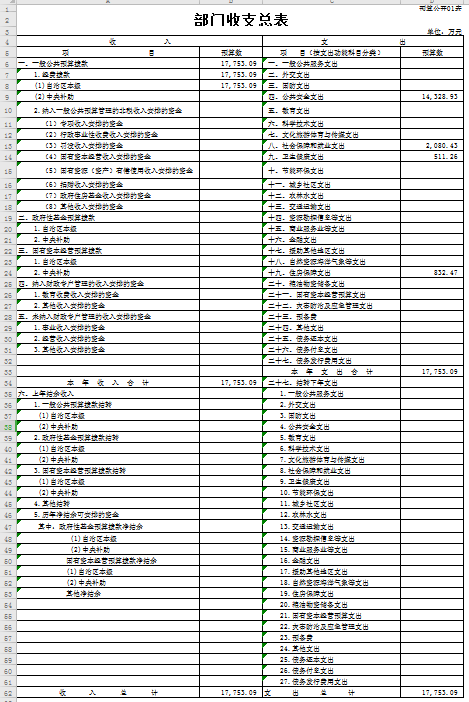 一、部门收支总表