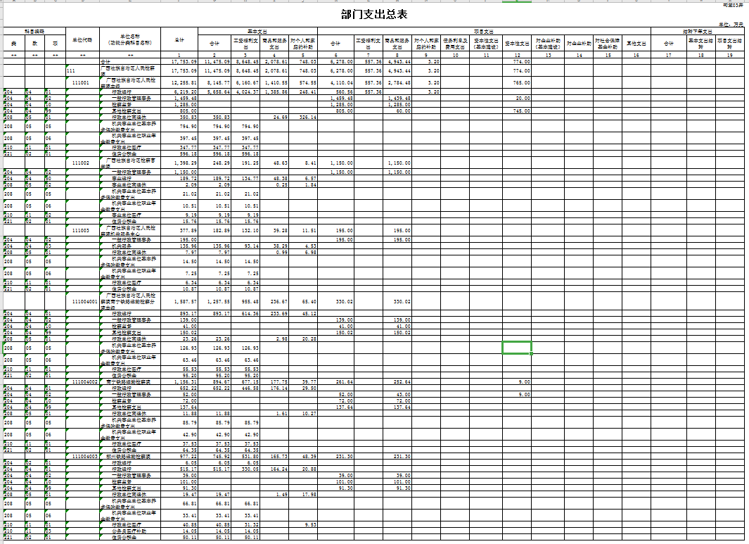 三、部门支出总表