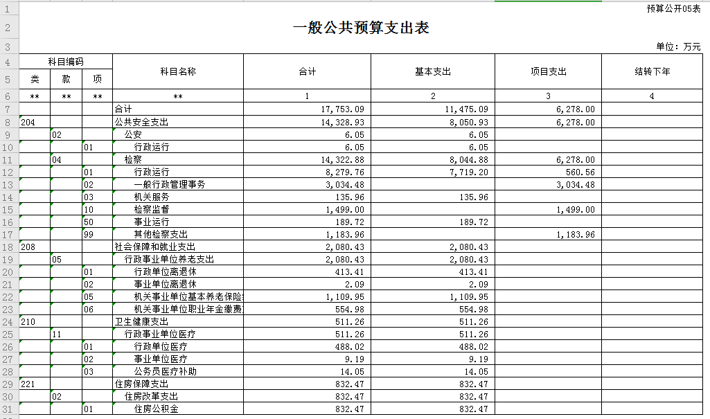五、一般公共预算支出表