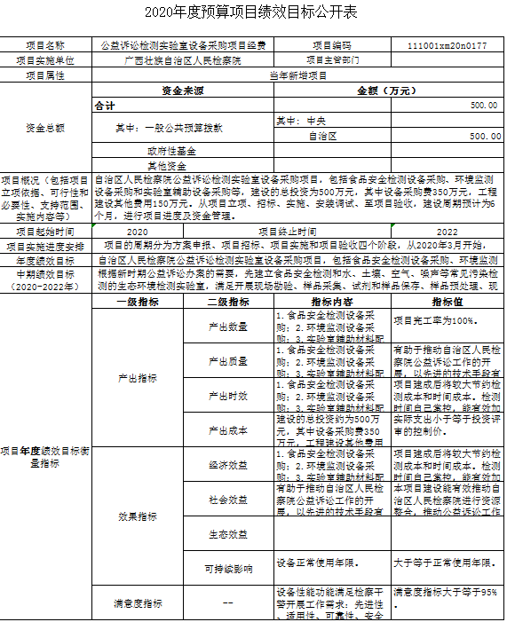 (三)公益诉讼检测实验室设备采购项目经费500万元,年度目标是通过落实食品安全检测设备、环境监测设备和实验室辅助设备等采购,较大节约检测成本和时间成本,掌控检测时间,有效加快样品检测速度,极大提升工作效能。