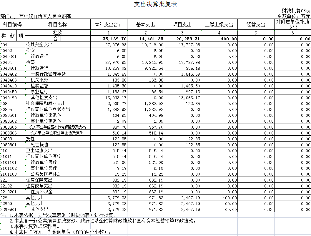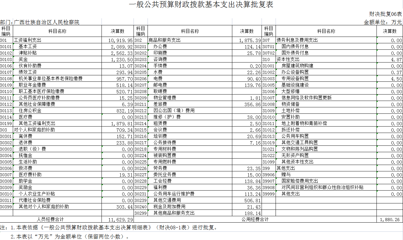 第二部分广西壮族自治区人民检察院2020年度部门决算报表